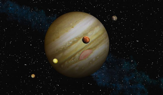 Sao Mộc có nhiều mặt trăng xoay nó. Bốn trong số các mặt trăng này còn lớn hơn cả Sao Diêm Vương.